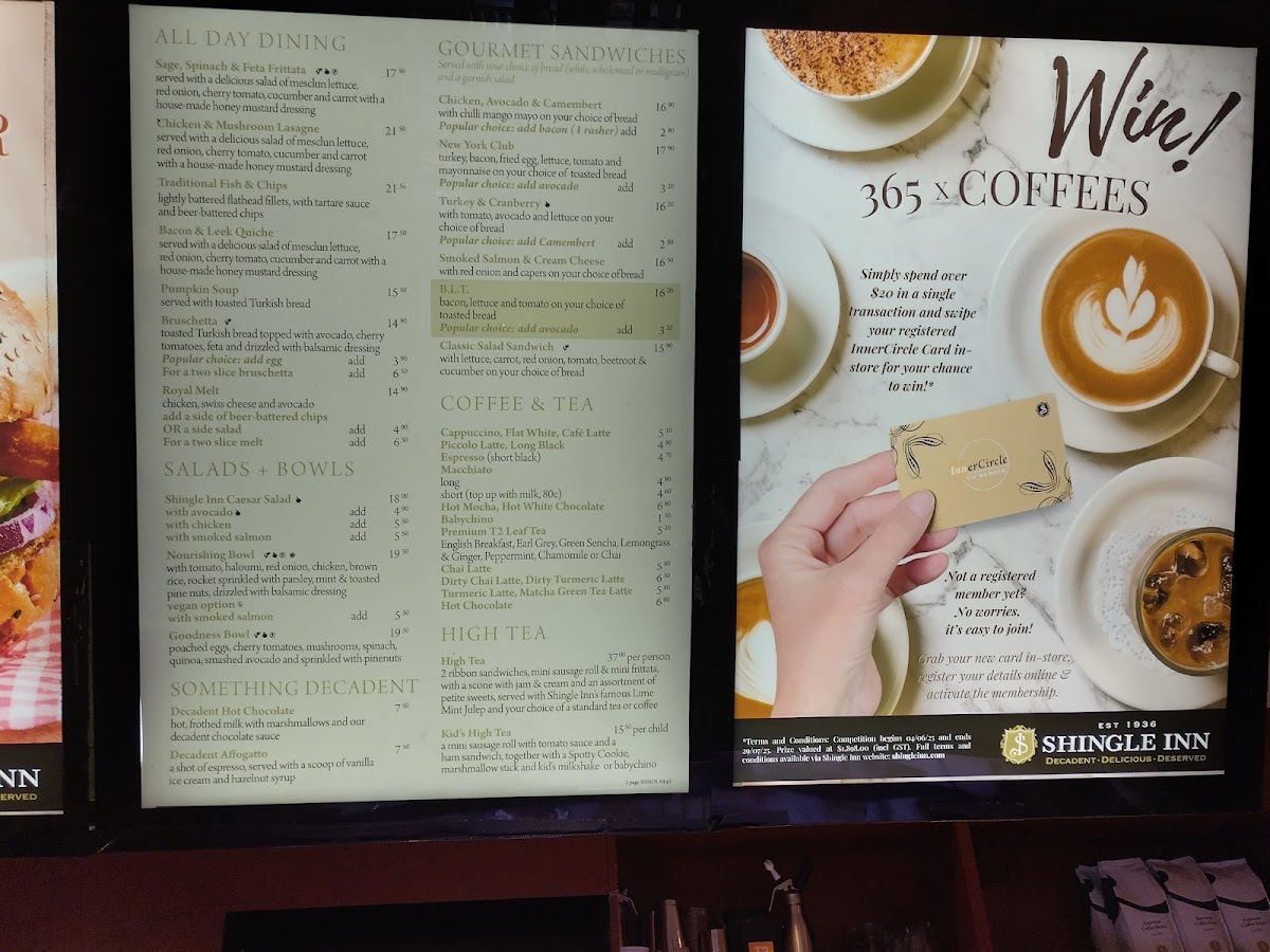Located in Narre Warren VIC, Shingle Inn Fountain Gate offers a varied menu designed to cater to different meal times and preferences. The menu includes options suitable for breakfast, lunch, coffee breaks, and dessert occasions.